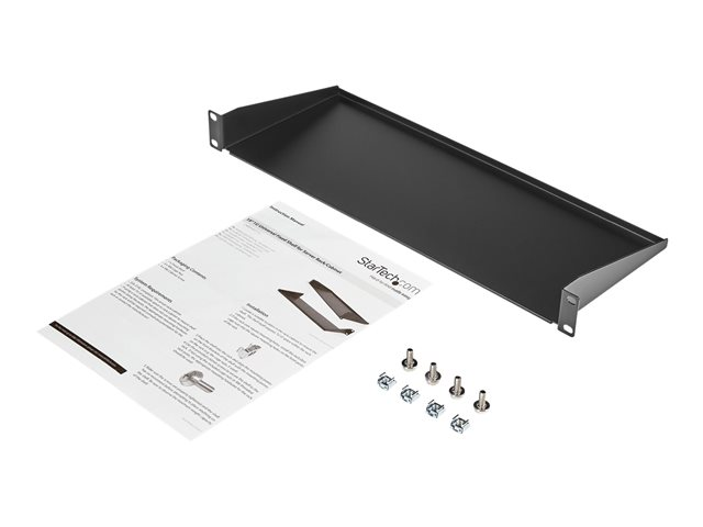 CABSHELF1U - StarTech.com 1U Server Rack Cabinet Shelf, 7in Deep Fixed Cantilever Tray, Rackmount Shelf for 19" AV/Data/Network Equipment Enclosure with Cage Nuts & Screws, 33lbs Weight Capacity