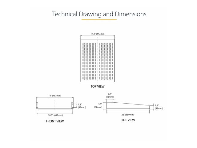 CABSHELF22V - StarTech.com 1U Server Rack Shelf, 2U 22in Universal Fixed Vented Network Rack Shelf/Cantilever Tray for 19" AV/Data/Network Equipment Enclosure w/Cage Nuts & Screws, 50lbs Weight Cap.