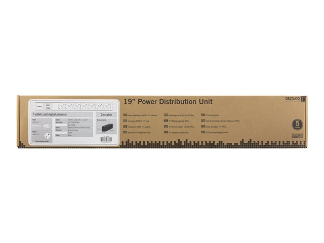 19-tums rackmonterbar Power Distribution Unit (PDU) som kan leverera upp till 10A/250V till 7 enheter samtidigt. Strömförsörj all elektronisk utrustning som använder standard CEE 7/3 (Schuko)-kontakten som finns på nästan all utrustning utformade för den Europeiska marknaden. Kabeln på 2m kan anslutas direkt till en UPS eller annan C14-strömkälla, och övervaka Volt och Ampere i realtid på den inbyggda 7-segmet skärmen.